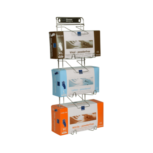 ABENA käsineteline 3 rasialle 1kpl hopea ruostumaton teräs