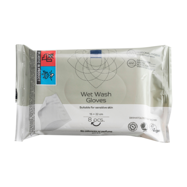 ABENAn kostutettu pesukinnas puhdistaa ja kosteuttaa miellyttävästi, ja se on hyvä vaihtoehto pesulle vedellä ja saippualla. Kinnas on 4-in-1-pesulappu, jossa on etu- ja takapuoli. Kun käsi on kintaassa, voit vaihtaa käytetyn pinnan puhtaaseen. Kun pesu on valmis, pesukintaan voi kääntää nurin koskematta epäpuhtaalle puolelle.