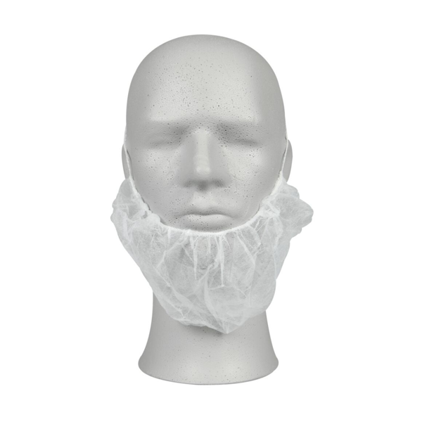 Pään takaa kulkevalla kuminauhalla varustettu partasuojus ympäristöihin, joissa hygieniastandardit ovat tiukkoja, esimerkiksi elintarvikkeiden valmistus, tuotanto tai tuotteiden pakkaus.