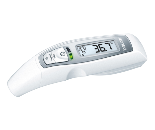 Lämpömittari kehon lämpötilan mittaamiseen ohimolta tai korvasta. Näyttö näyttää päivämäärän ja kellonajan ja voi tallentaa jopa kymmenen mittaustulosta. Automaattinen sammutustoiminto. Lämpömittari toimii kahdella 1,5 V AAA-paristolla (LR 03).